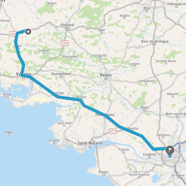 Continuer et rejoindre N165 E60 (N165). Continuer sur 104 kilomètres