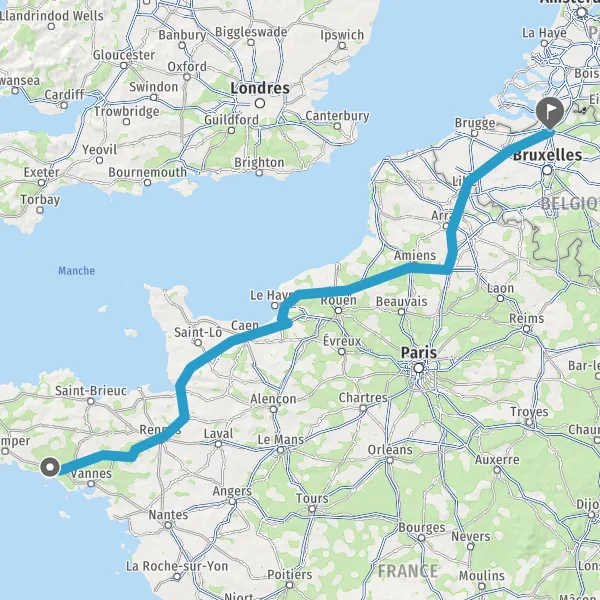 Prendre à droite et rejoindre N165 E60 (N165). Continuer sur 7,6 kilomètres