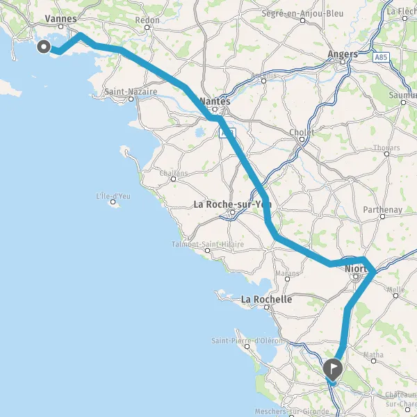 Prendre à droite et rejoindre A83. Continuer sur 150 kilomètres