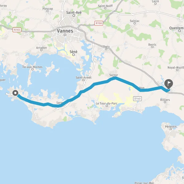 Tourner légèrement à droite sur D20 (Route de Sarzeau) et continuer sur 5,3 kilomètres
