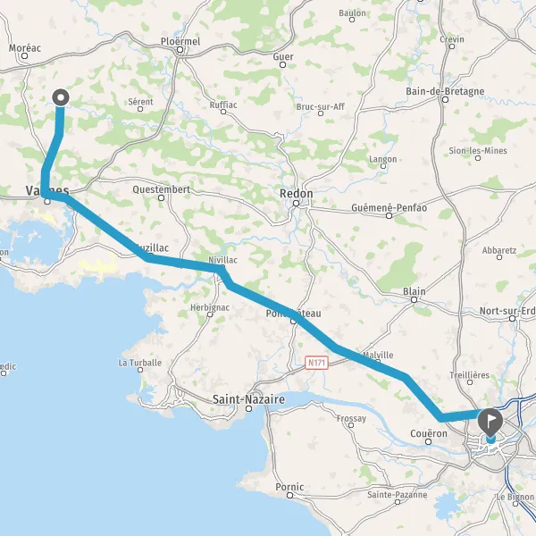 Au rond-point, prendre la 2ème sortie sur D778 (Rue de Vannes) et continuer sur 14 kilomètres