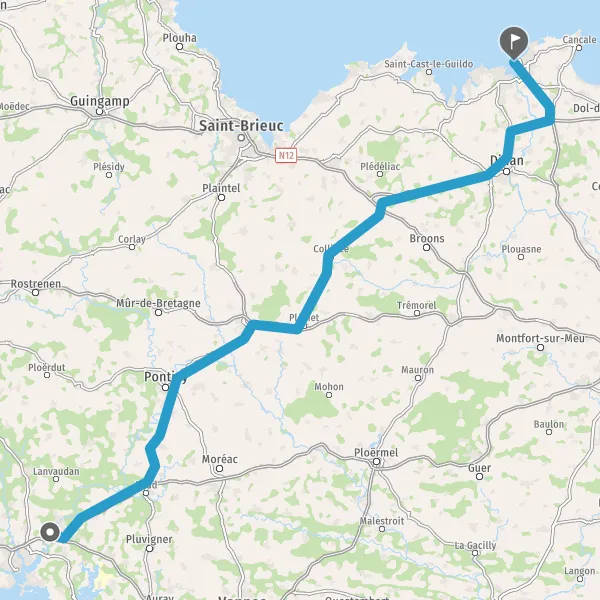 Au rond-point, prendre la 2ème sortie sur D768 (Route de Pontivy) et continuer sur 43 kilomètres
