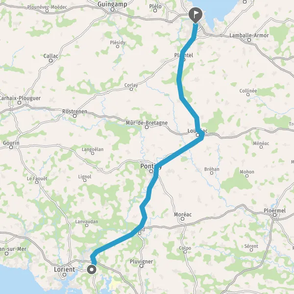 Au rond-point, prendre la 2ème sortie sur D768 (Route de Pontivy) et continuer sur 43 kilomètres