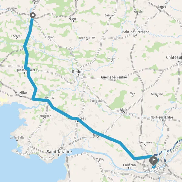 Prendre à droite et rejoindre N165 E60 (N165). Continuer sur 71 kilomètres