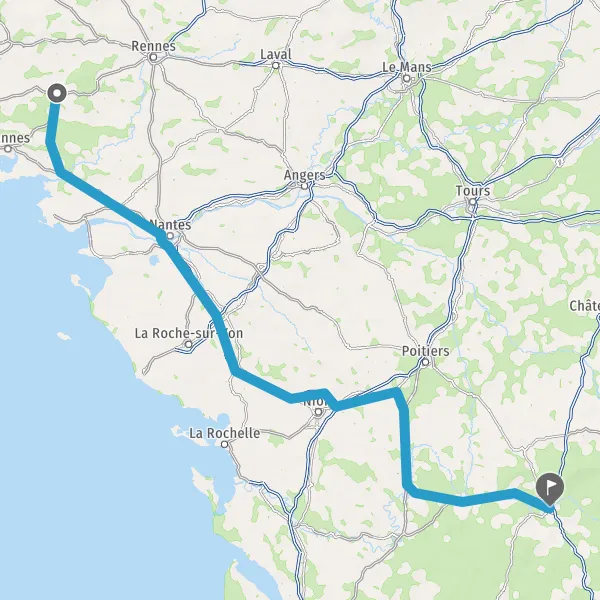 Prendre à droite et rejoindre A83. Continuer sur 150 kilomètres