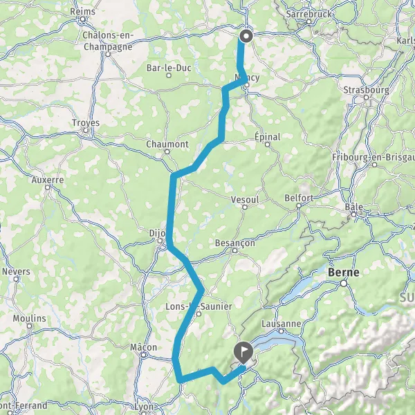 Entrer en Suisse et prendre Route de France sur 7,7 kilomètres