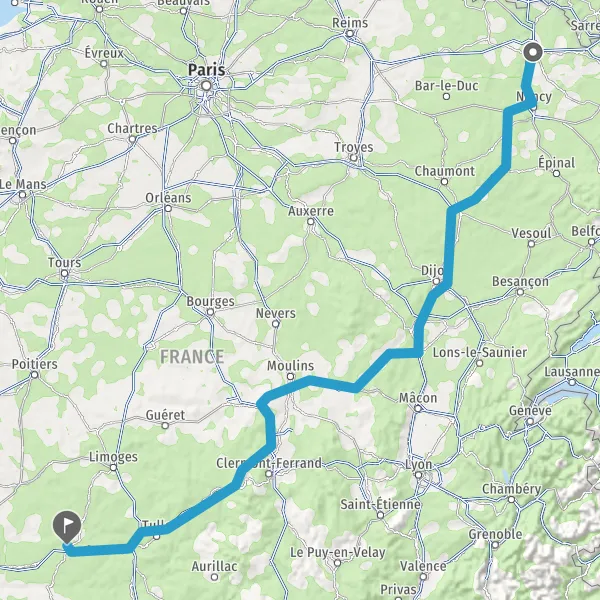 Prendre à droite et rejoindre A89 E70. Continuer sur 160 kilomètres