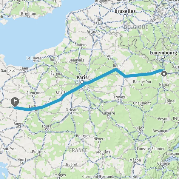 Prendre à droite et rejoindre A11 E50. Continuer sur 147 kilomètres