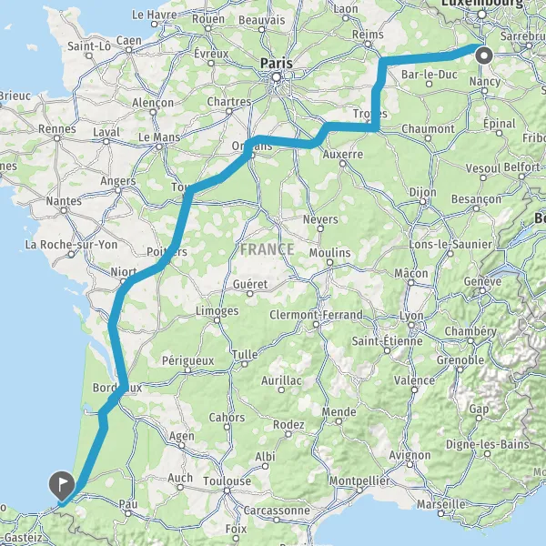 Prendre à droite et rejoindre A63. Continuer sur 183 kilomètres