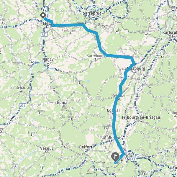 Tourner à droite sur D21bis (Rue de Bâle) et continuer sur 2,8 kilomètres