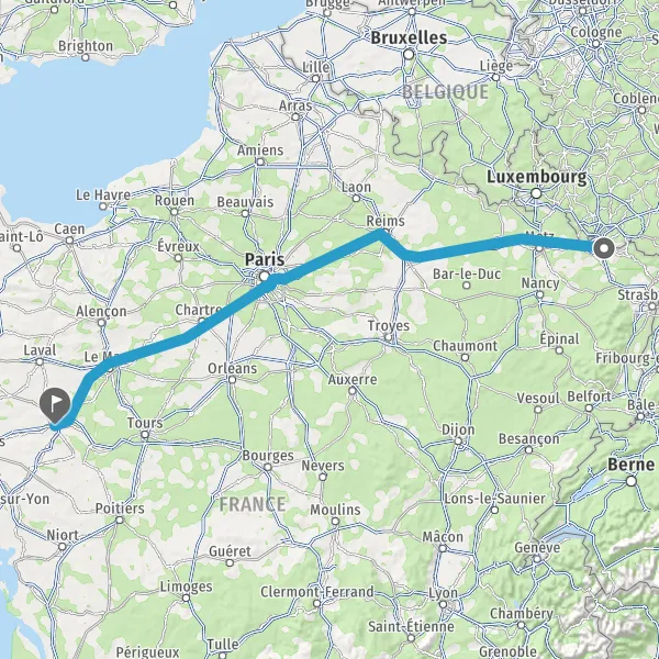 Prendre à droite et rejoindre A11 E50. Continuer sur 147 kilomètres