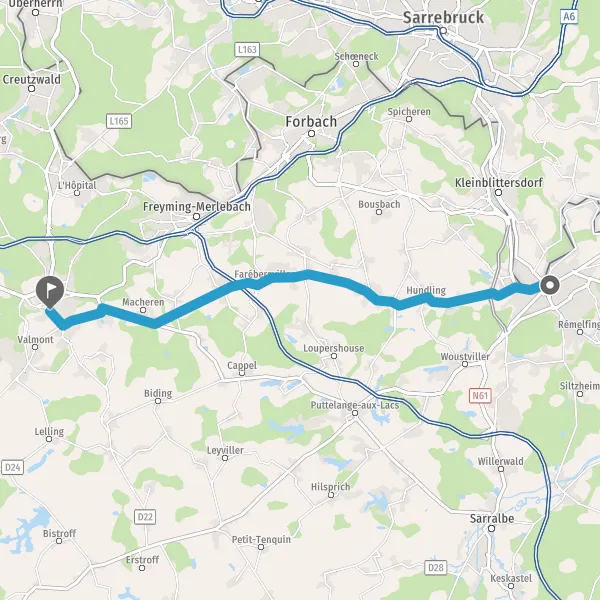 Au rond-point, prendre la 2ème sortie sur D910 (Rue de Farébersviller) et continuer sur 700 mètres