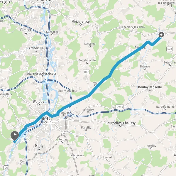 Tourner légèrement à droite sur D3 (Route de Metz) et continuer sur 13 kilomètres