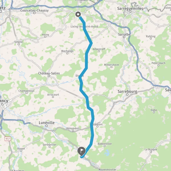 Tourner légèrement à droite sur D22 (Rue de Saint-Avold) et continuer sur 2,7 kilomètres