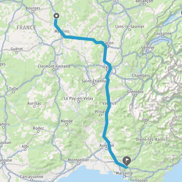 Prendre à droite et rejoindre A79 E62. Continuer sur 30 kilomètres