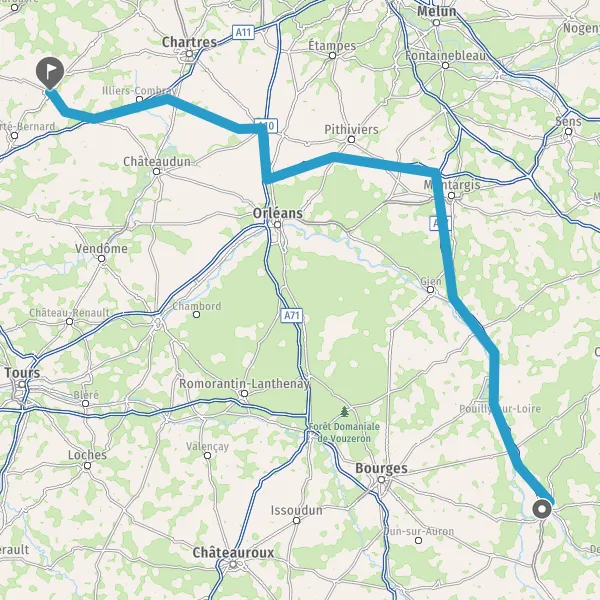 Prendre à gauche et rejoindre A11 E50. Continuer sur 34 kilomètres