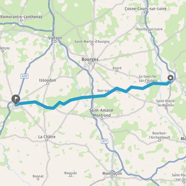 Tourner à droite sur D14 (Route de Levet) et continuer sur 19 kilomètres