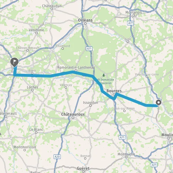 Prendre à droite et rejoindre A71. Continuer sur 37 kilomètres