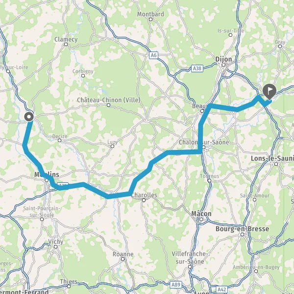 Prendre un ticket (Péage Montbeugny) Payer 1,00 € (Péage Montbeugny Est) Prendre un ticket (Péage Molinet Ouest) Payer 1,30 € (Péage Molinet Est) 70 km