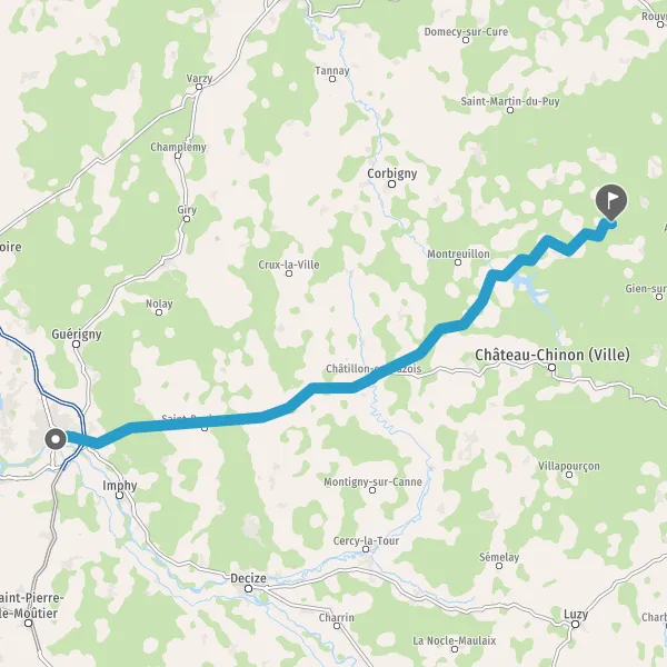 Au rond-point, prendre la 3ème sortie sur D978 (Route de Château-Chinon) et continuer sur 15 kilomètres