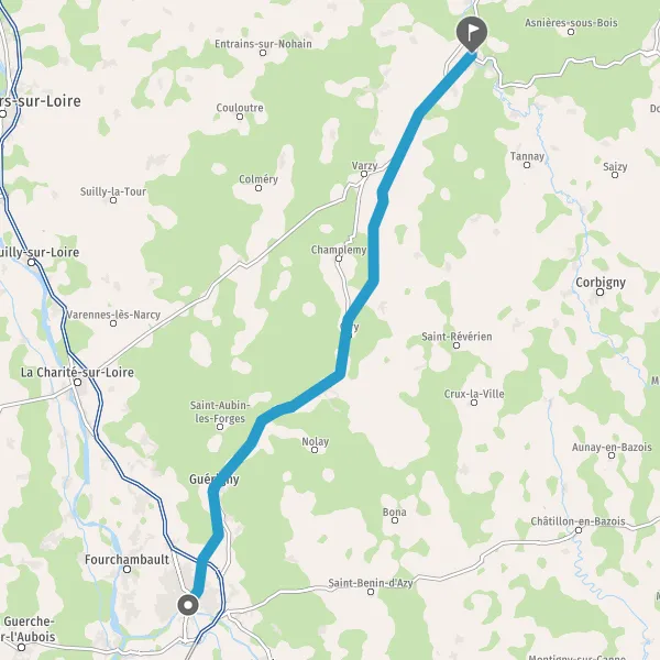 Au rond-point, prendre la 2ème sortie sur D977 (Route de Nevers) et continuer sur 8 kilomètres