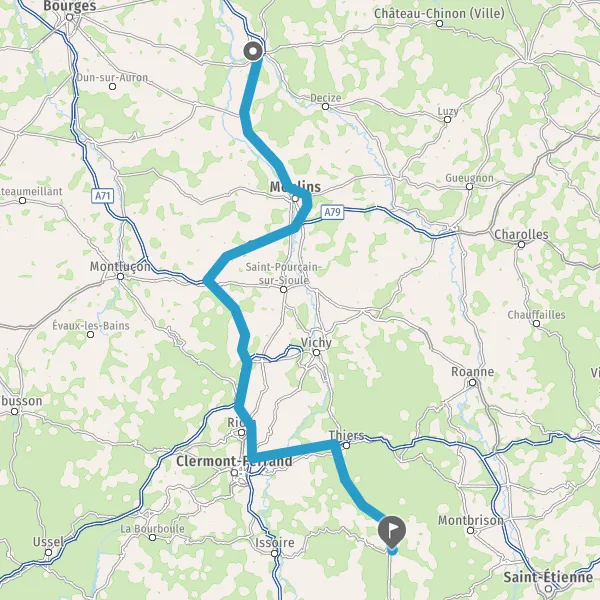 Prendre à gauche et rejoindre A79 E62. Continuer sur 37 kilomètres