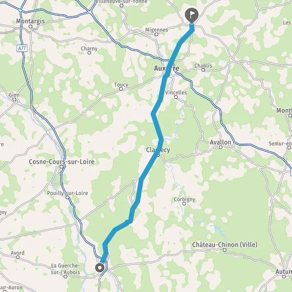 Tourner à droite sur D43 (Route de Vergigny) et continuer sur 2,7 kilomètres