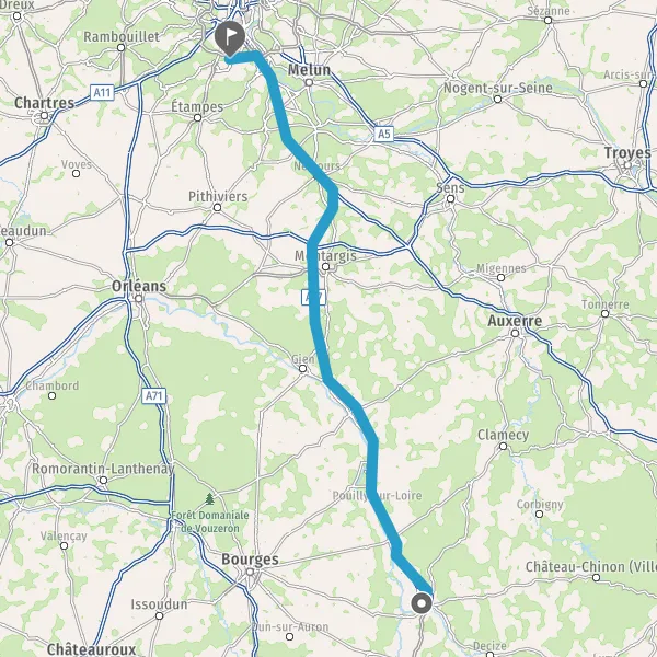 Prendre à droite et rejoindre A77. Continuer sur 98 kilomètres