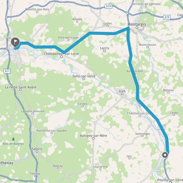Tourner à gauche sur D13 (Route d'Orléans) et continuer sur 15 kilomètres