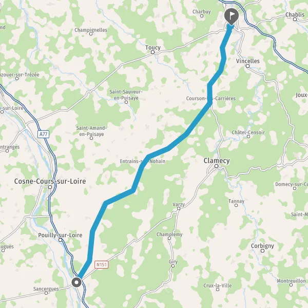 Tourner à gauche sur N151 (Rue d'Auxerre) et continuer sur 14 kilomètres