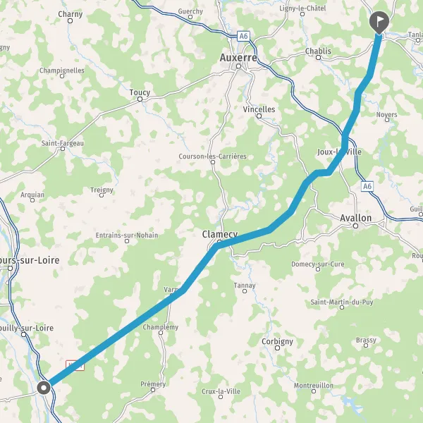 Tourner légèrement à droite sur N151 (Rue du Faubourg de Vézelay) et continuer sur 12 kilomètres