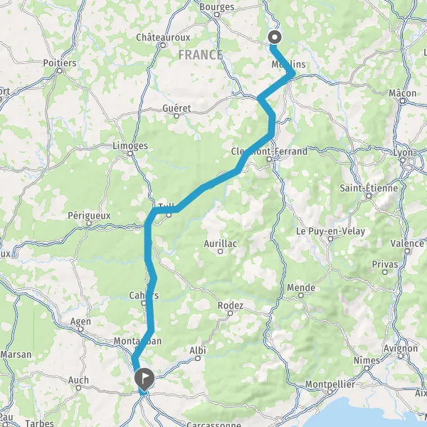 Prendre à gauche et rejoindre A79 E62. Continuer sur 37 kilomètres
