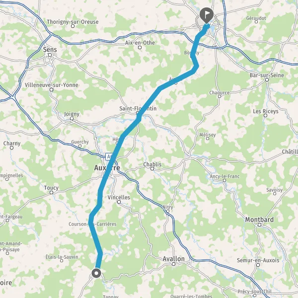 Au rond-point, prendre la 2ème sortie sur D677 (Route d'Auxerre) et continuer sur 1 kilomètre