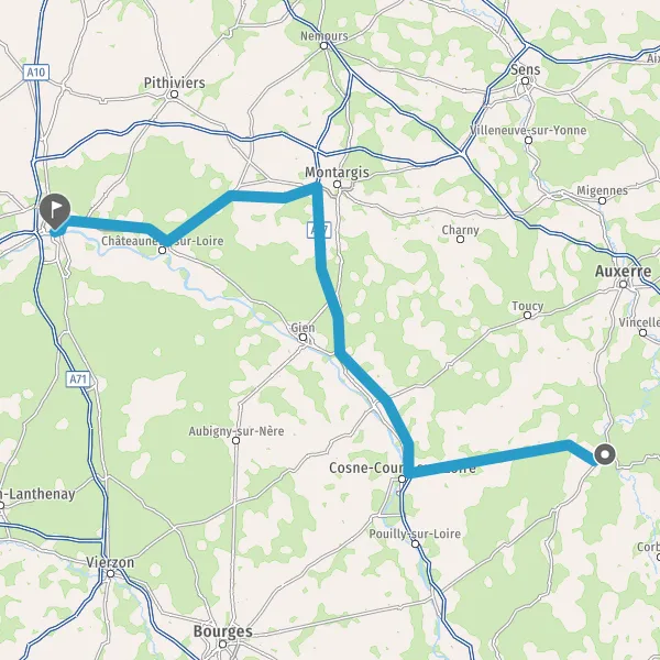 Tourner légèrement à droite sur D957 (Route de Clamecy) et continuer sur 13 kilomètres