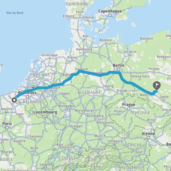 Continuer A2 A2 E30 sur 216 kilomètres