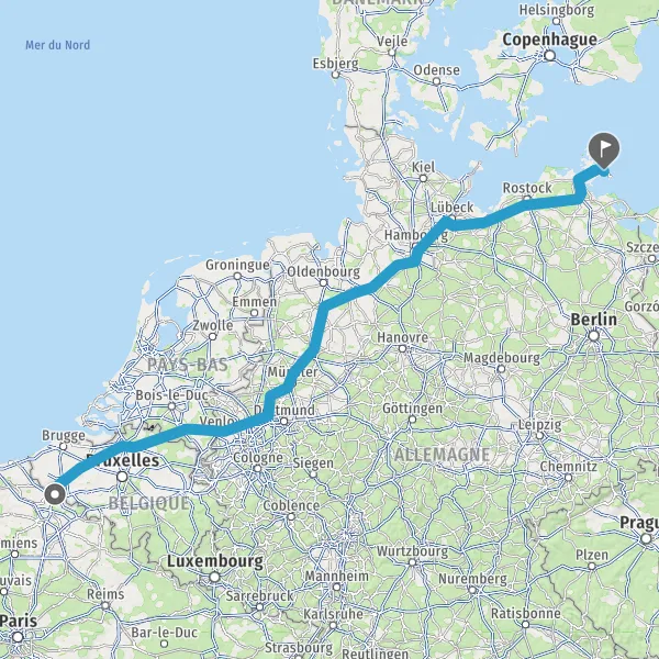 Entrer en Allemagne et prendre B96 E22 E251 (Rügenbrücke) sur 21 kilomètres