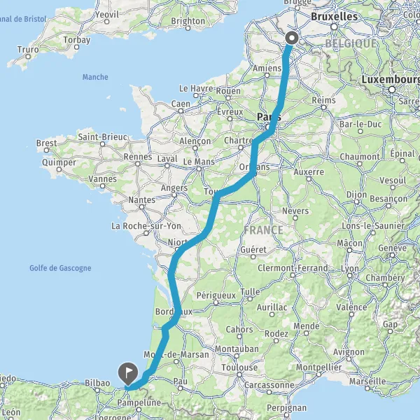 Payer 4,40 € (Péage Saugnacq-et-Muret) Payer 4,40 € (Péage Castets) Payer 4,30 € (Péage Benesse) Autoroute de la Côte Basque Payer 2,80 € (Péage La Negresse) Payer 2,00 € (Péage Biriatou) 812 km