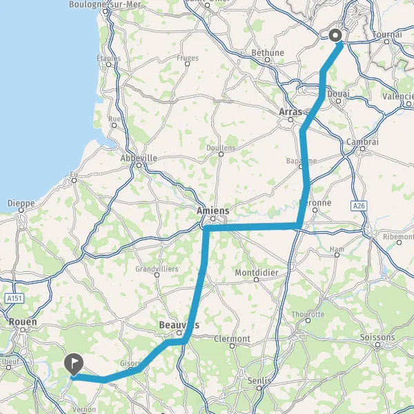 Prendre à gauche et rejoindre A16. Continuer sur 52 kilomètres