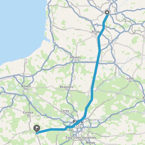 Continuer E17 (Autoroute du Nord) sur 182 kilomètres