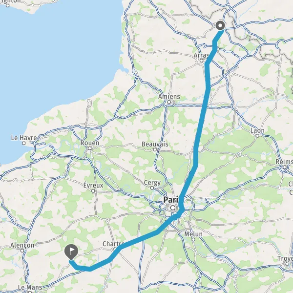 Continuer E17 (Autoroute du Nord) sur 173 kilomètres
