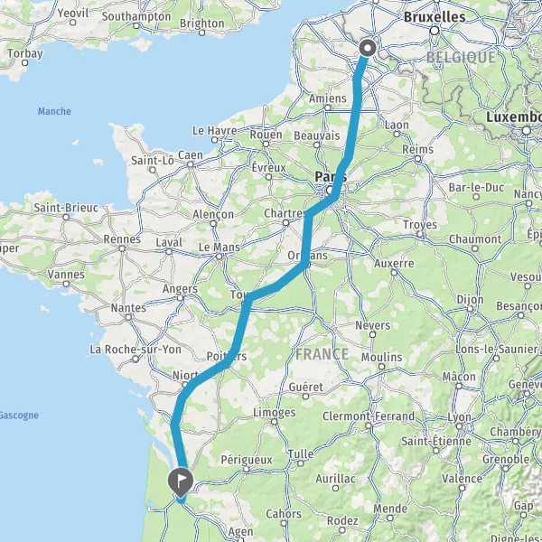 Prendre à droite et rejoindre A10. Continuer sur 34 kilomètres