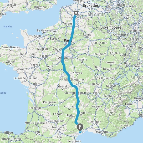 Trajet de Lille (59000) à Pézenas (34120) en voiture