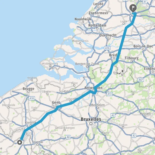 Prendre à gauche et rejoindre A22 E17. Continuer sur 12 kilomètres