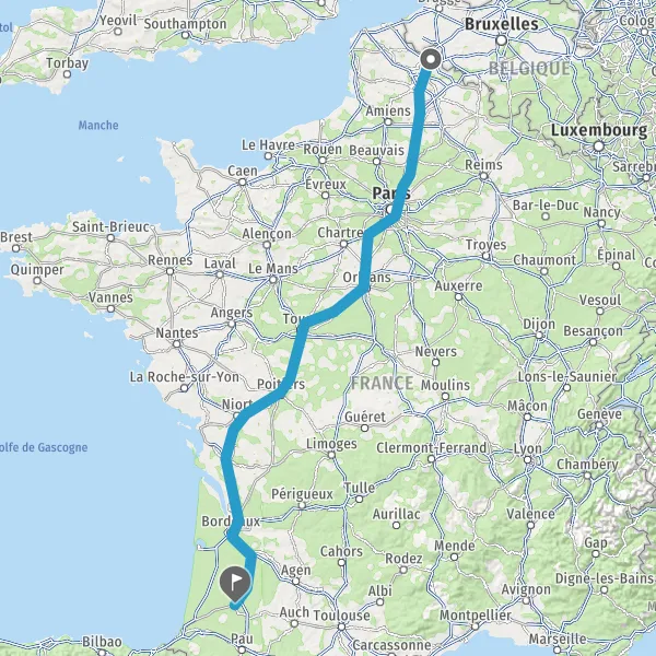 Prendre à droite et rejoindre A65. Continuer sur 70 kilomètres