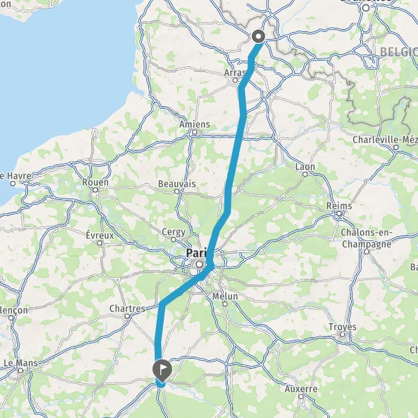 Continuer E17 (Autoroute du Nord) sur 173 kilomètres