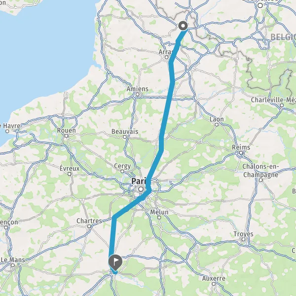 Continuer E17 (Autoroute du Nord) sur 173 kilomètres