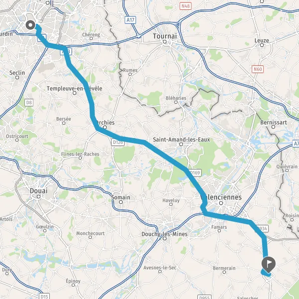 Au rond-point, prendre la 2ème sortie sur D934 (Rue de Valenciennes) et continuer sur 2 kilomètre