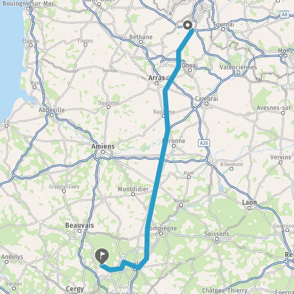 Continuer E17 (Autoroute du Nord) sur 145 kilomètres