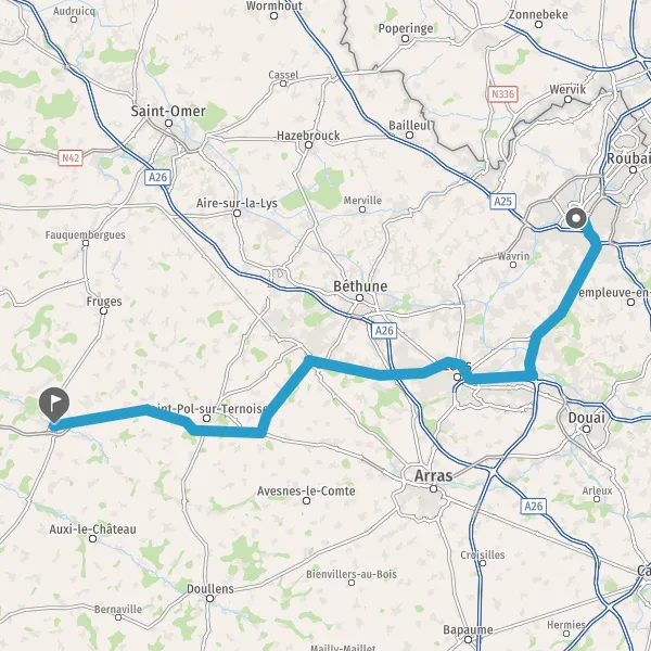 Au rond-point, prendre la 2ème sortie sur D939 (Route de Saint-Pol) et continuer sur 1,5 kilomètre