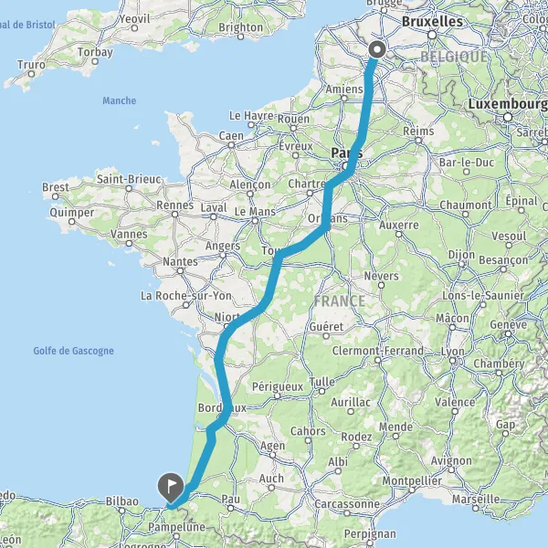 Payer 4,40 € (Péage Saugnacq-et-Muret) Payer 4,40 € (Péage Castets) Payer 4,30 € (Péage Benesse) Autoroute de la Côte Basque Payer 2,80 € (Péage La Negresse) Payer 2,00 € (Péage Biriatou) 816 km